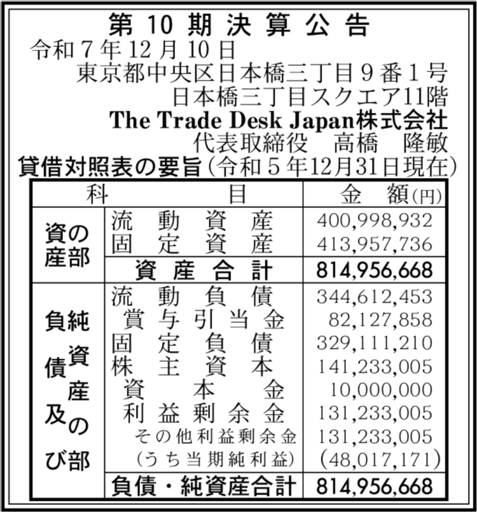 東京都中央区日本橋三丁目9番1号日本橋三丁目スクエア11階 同じ住所の会社を検索 |