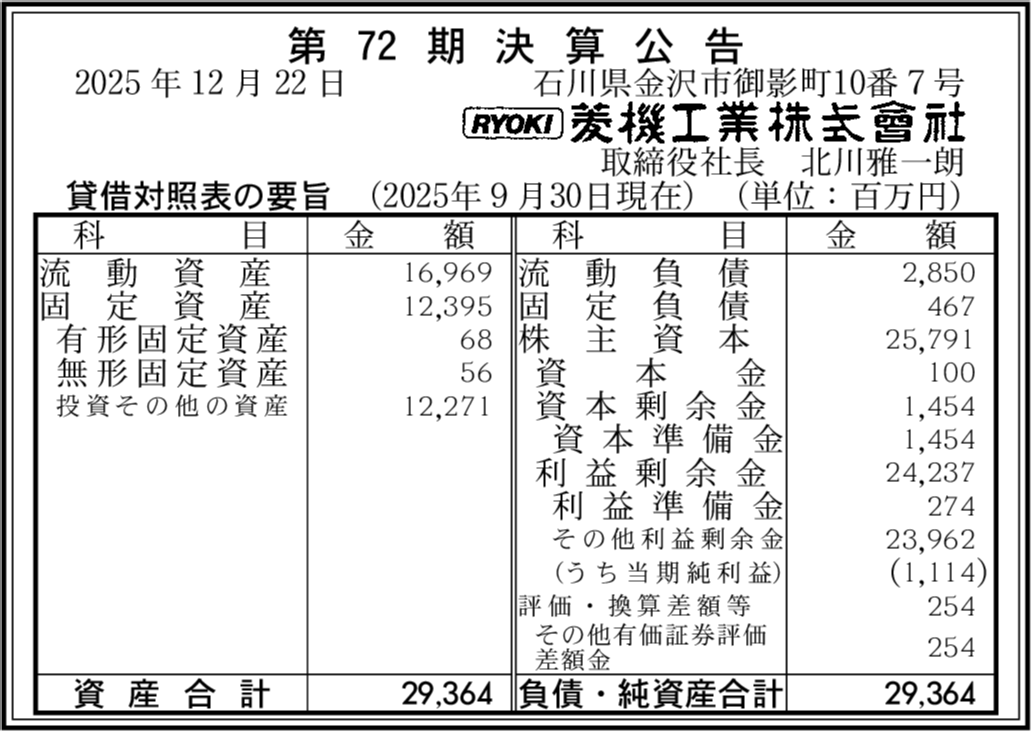 RYOKI ENERGY株式会社 石川県金沢市 【2022年9月期】 |