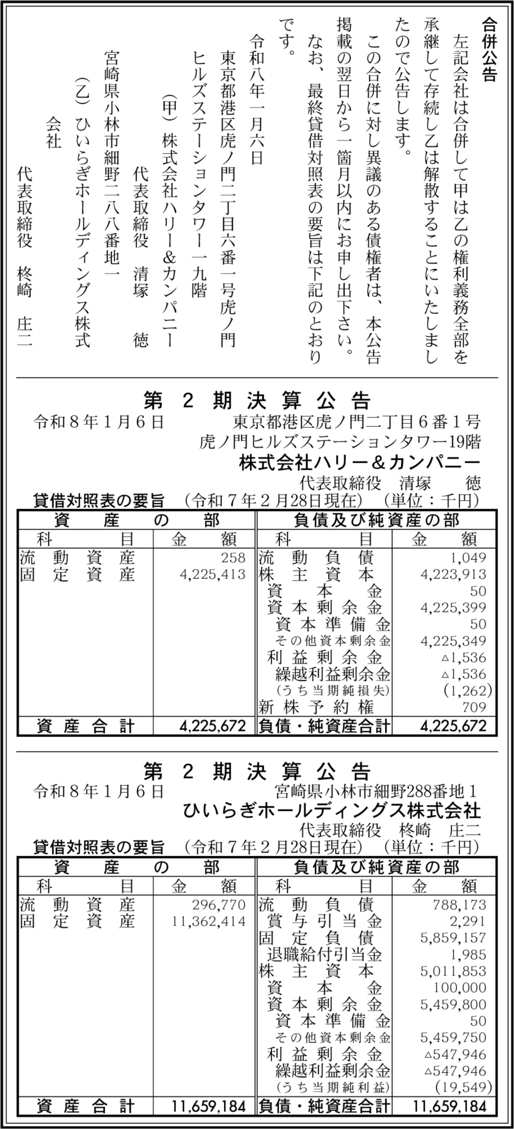 | 会社名 | ひいらぎホールディングス株式会社 |