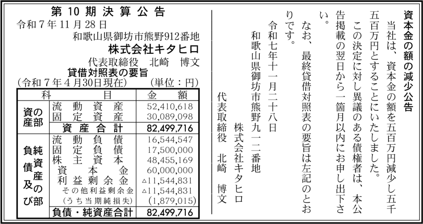 | 会社名 | 株式会社キタヒロ |