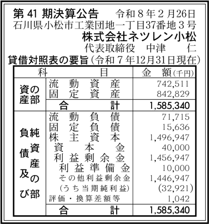 | 会社名 | 株式会社ネツレン小松 |