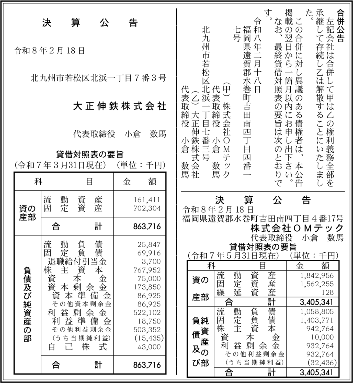 株式会社OMテック 福岡県遠賀郡水巻町 【2025年5月期】 |