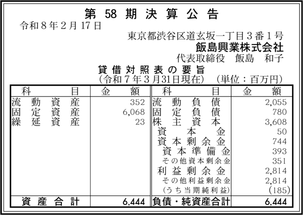 飯島商事株式会社閉鎖済み 東京都渋谷区 【2022年3月期】 |