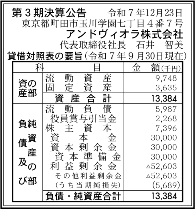 | 利益剰余金 | ▲5,260万3,000円 (赤字拡大) |