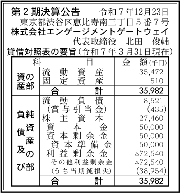 | 会社名 | 株式会社エンゲージメントゲートウェイ |