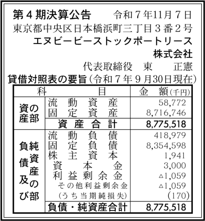 エヌビービーラッフルズプレイスリース株式会社 東京都中央区 【2025年9月期】 |