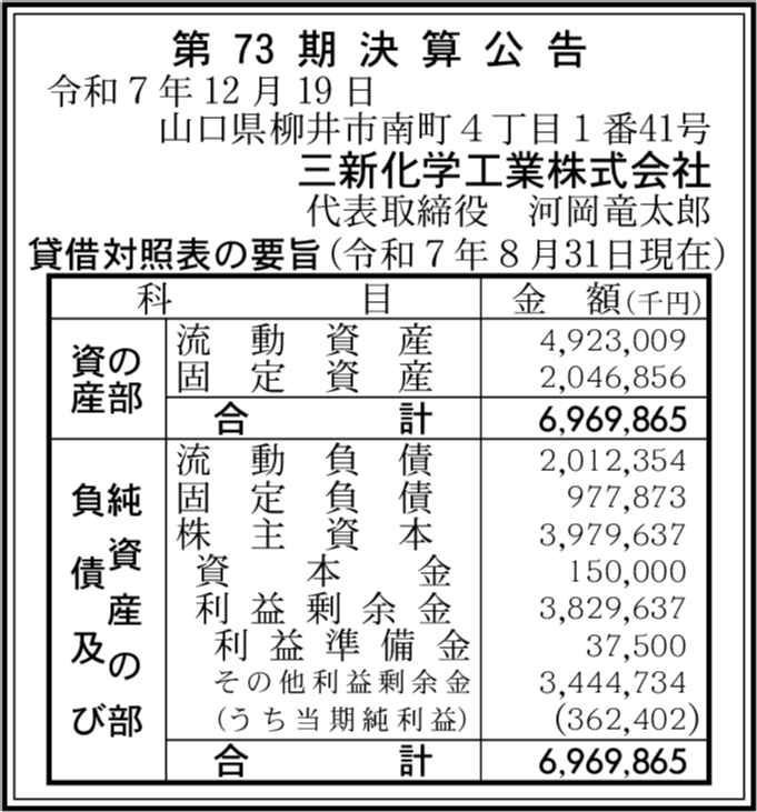 | 会社名 | 三新化学工業株式会社 |