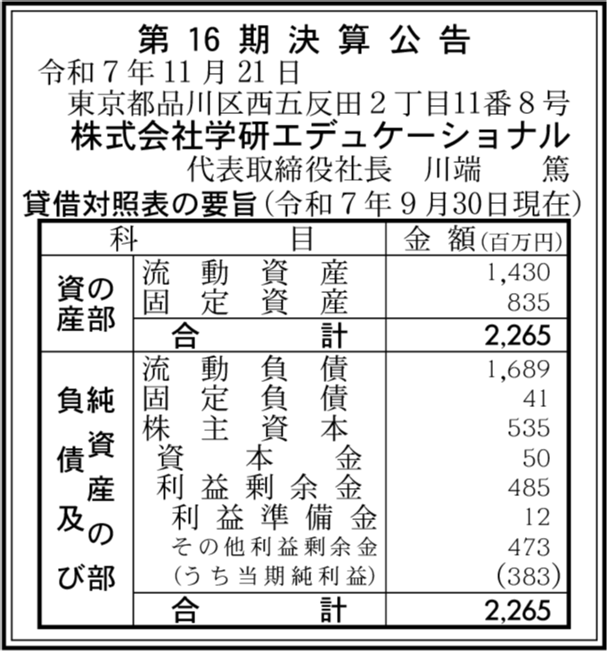 株式会社Gakken SEED 東京都品川区 【2025年9月期】 |