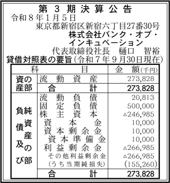 | 会社名 | 株式会社バンク・オブ・インキュベーション |