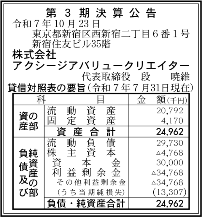 株式会社アクシージアテクノロジー 東京都新宿区 【2025年7月期】 |