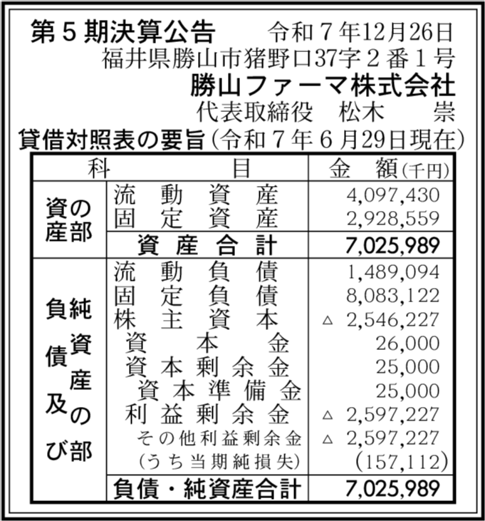 | 会社名 | 勝山ファーマ株式会社 |