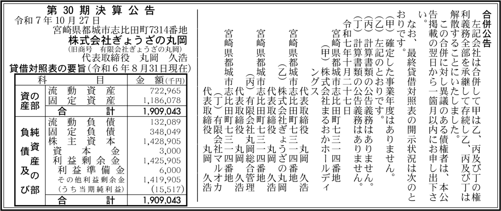 | 会社名 | 株式会社ぎょうざの丸岡 |