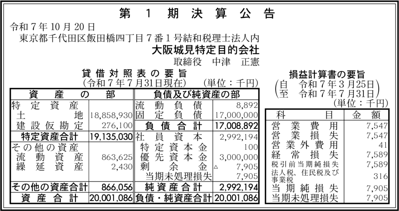 | 会社名 | 大阪城見特定目的会社 |