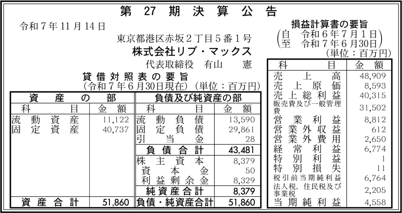 | 会社名 | 株式会社リブ・マックス |