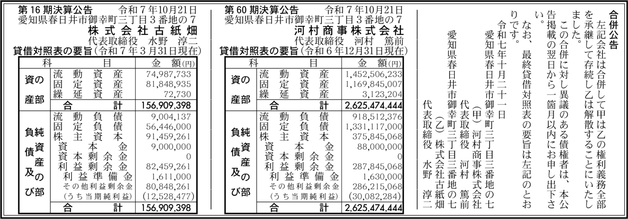 河村商事株式会社 愛知県春日井市 【2024年12月期】 |