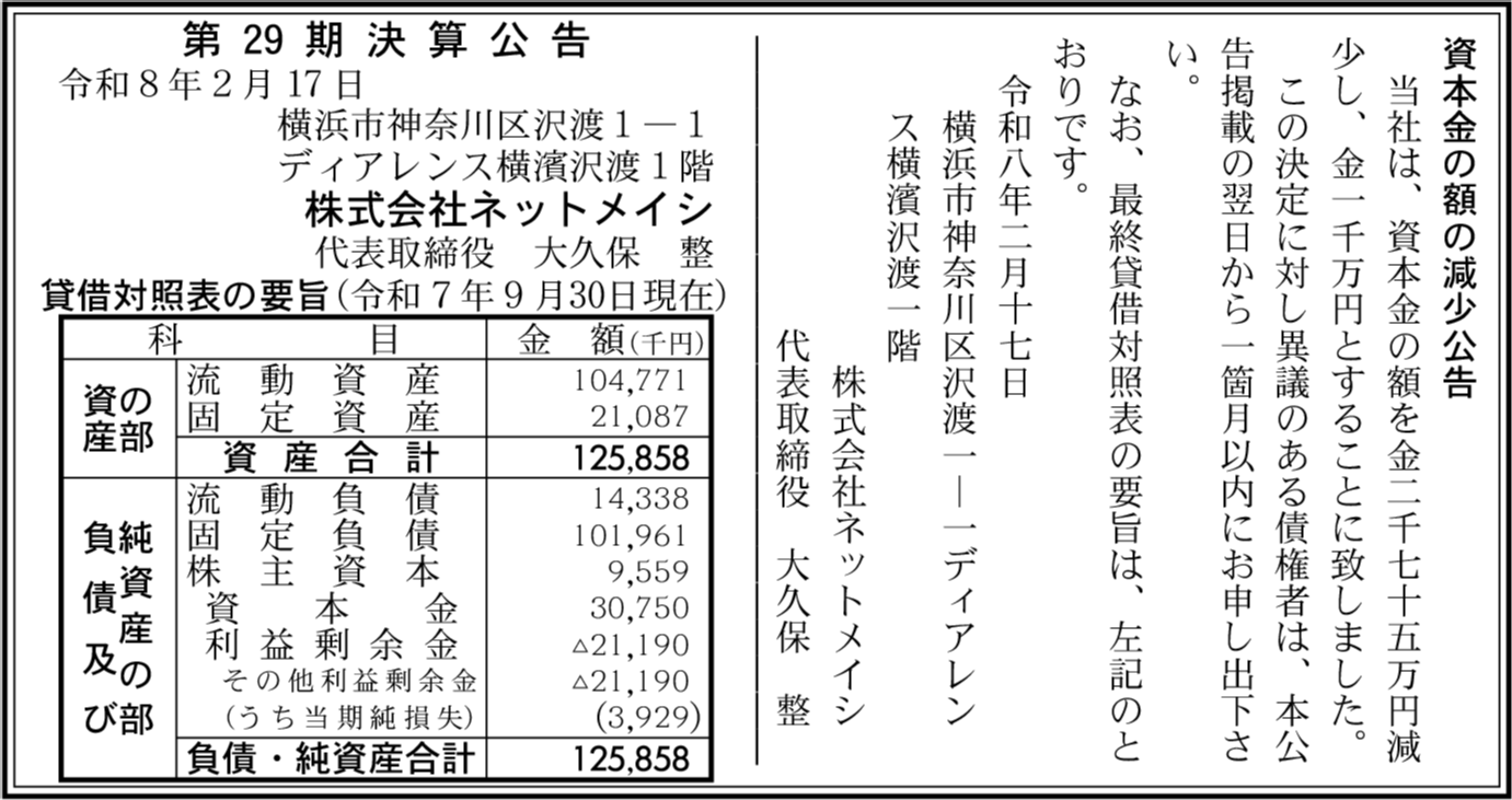 | 会社名 | 株式会社ネットメイシ |