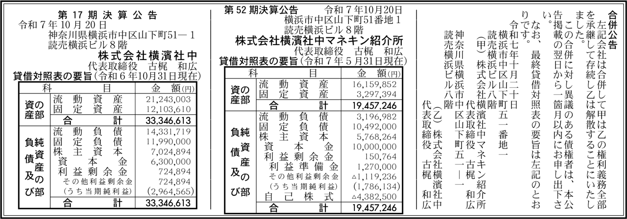 横浜市中区山下町51番地1読売横浜ビル8階 同じ住所の会社を検索 |