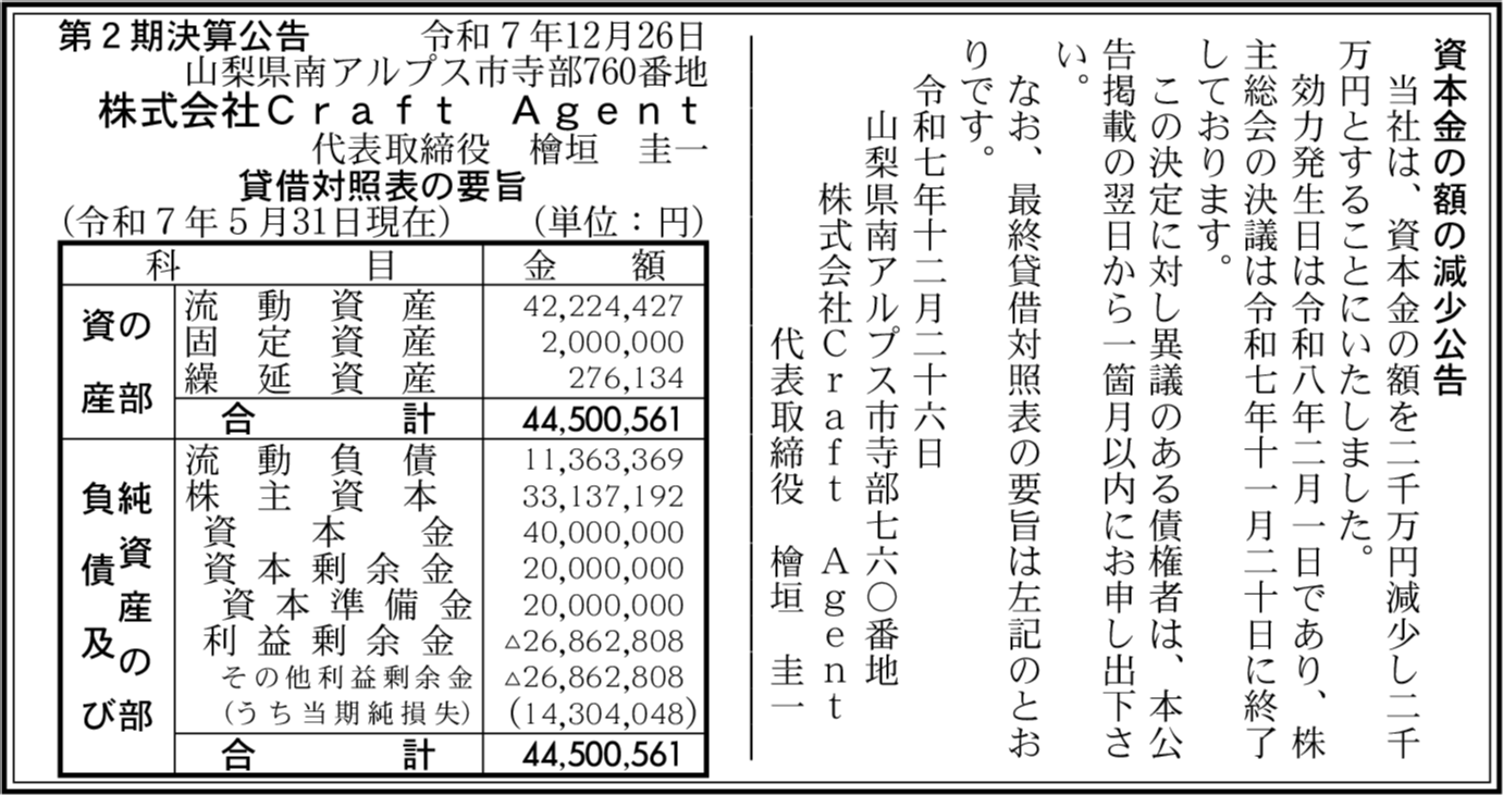 | 会社名 | 株式会社Craft Agent |