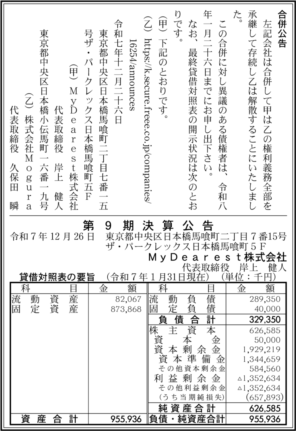 | 総資産 | 9億5,593万6,000円 (▲18.69%) |