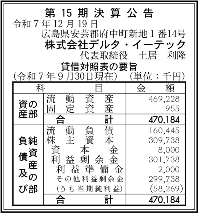 デルタ工業株式会社 広島県安芸郡府中町 【2024年12月期】 |