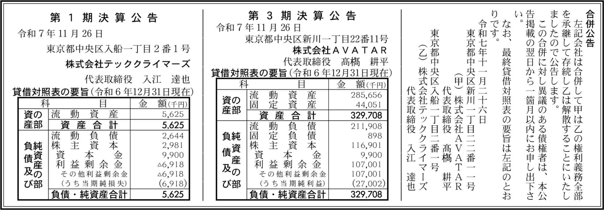 株式会社AVATAR 東京都中央区 【2024年12月期】 |