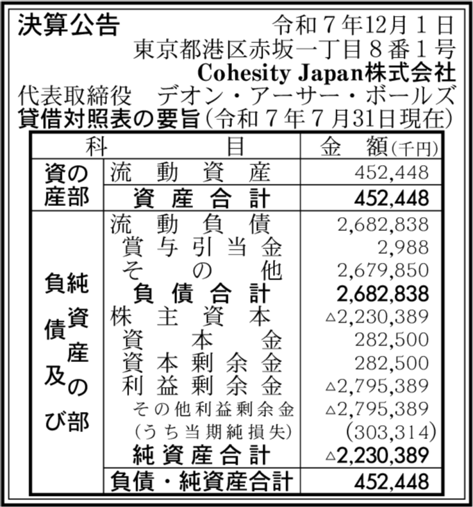 株式会社Orbital Lasers 東京都港区 【2025年3月期】 |