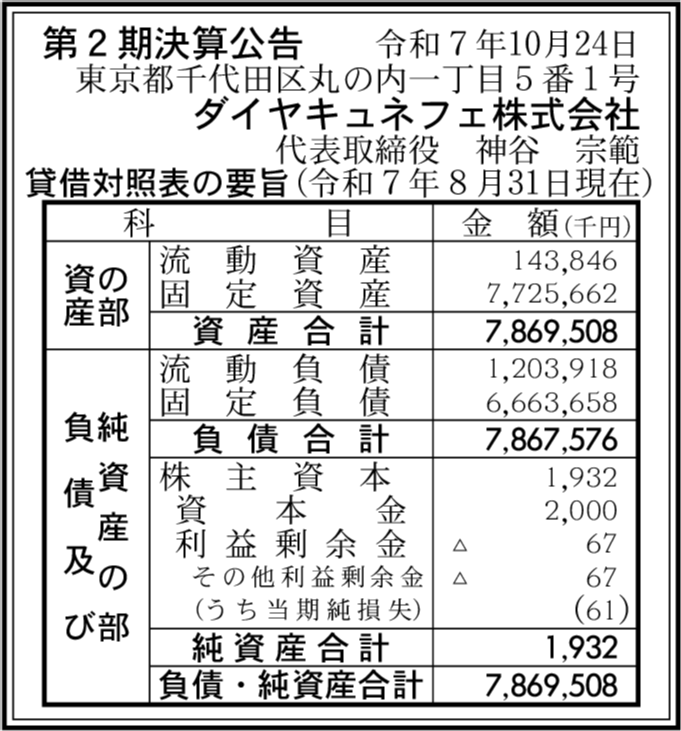 ダイヤレオ株式会社 東京都千代田区 【2025年8月期】 |