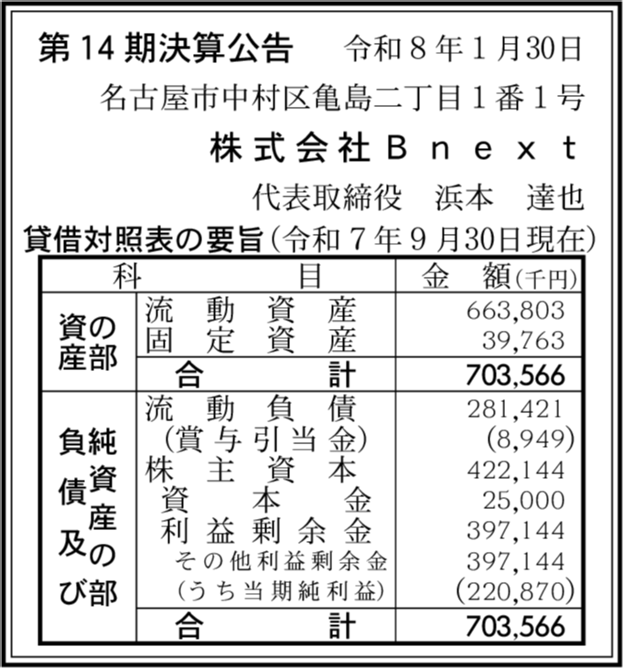 | 会社名 | 株式会社Bnext |