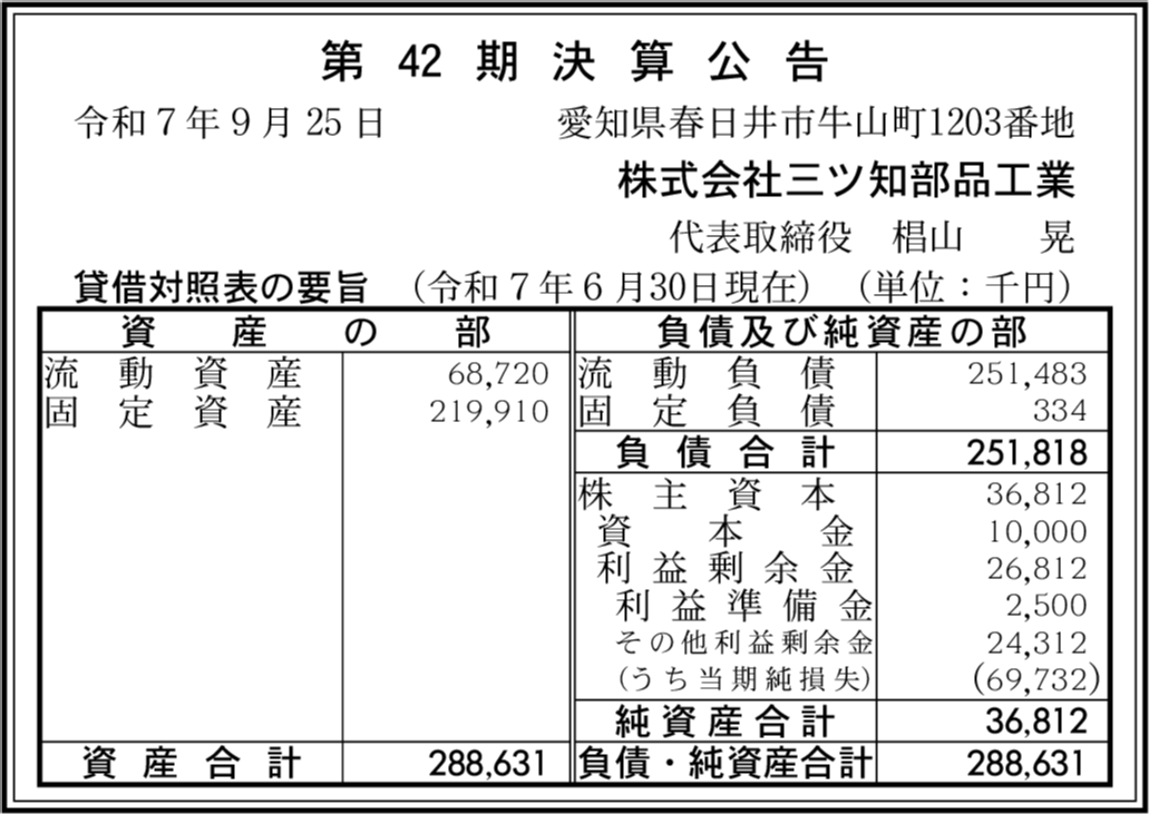 株式会社三ツ知春日井閉鎖済み 愛知県春日井市 【2018年6月期】 |