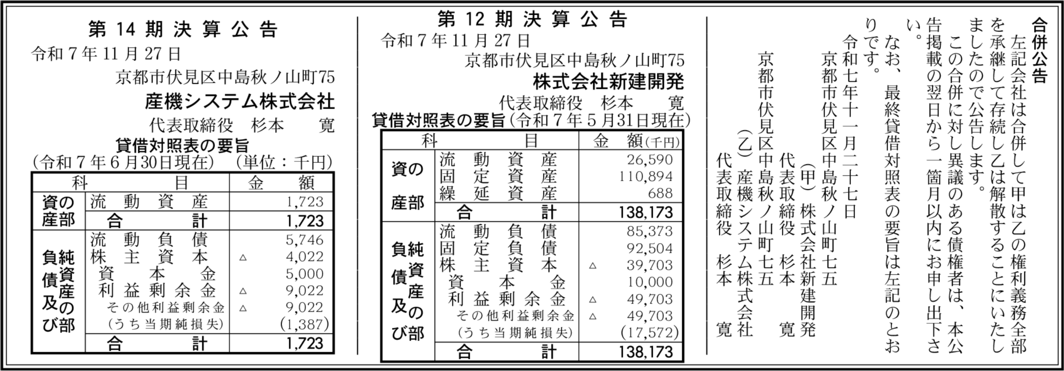 株式会社新建開発 京都市伏見区 【2025年5月期】 |