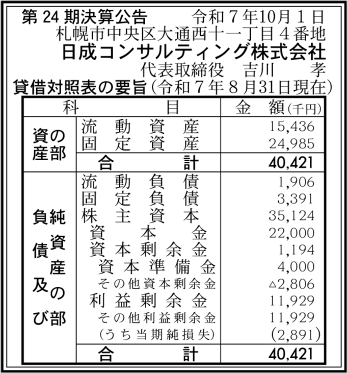 タケサト株式会社 札幌市中央区 【2025年7月期】 |
