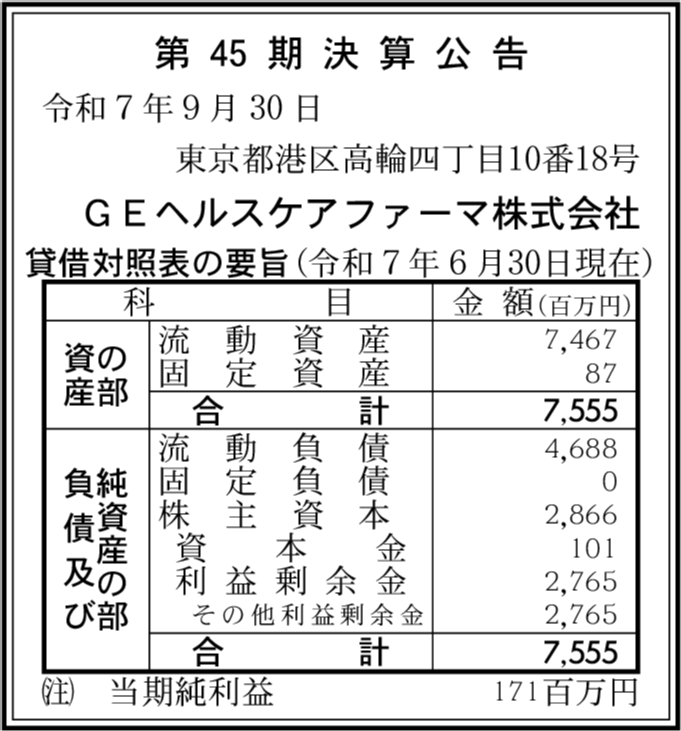 | 会社名 | GEヘルスケアファーマ株式会社 |