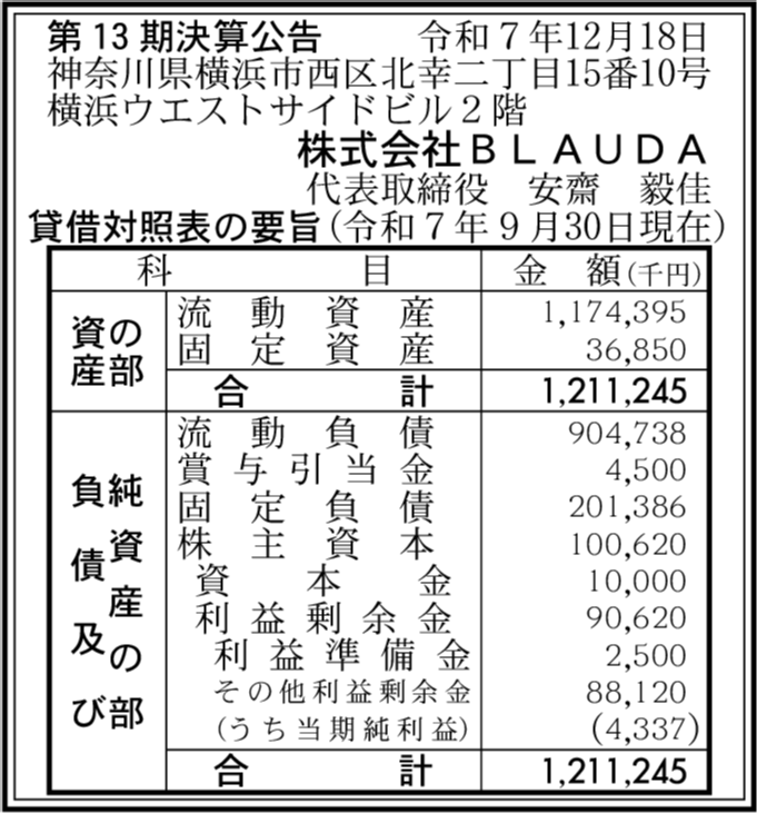 株式会社NKB Y’s 横浜市西区 【2025年9月期】 |