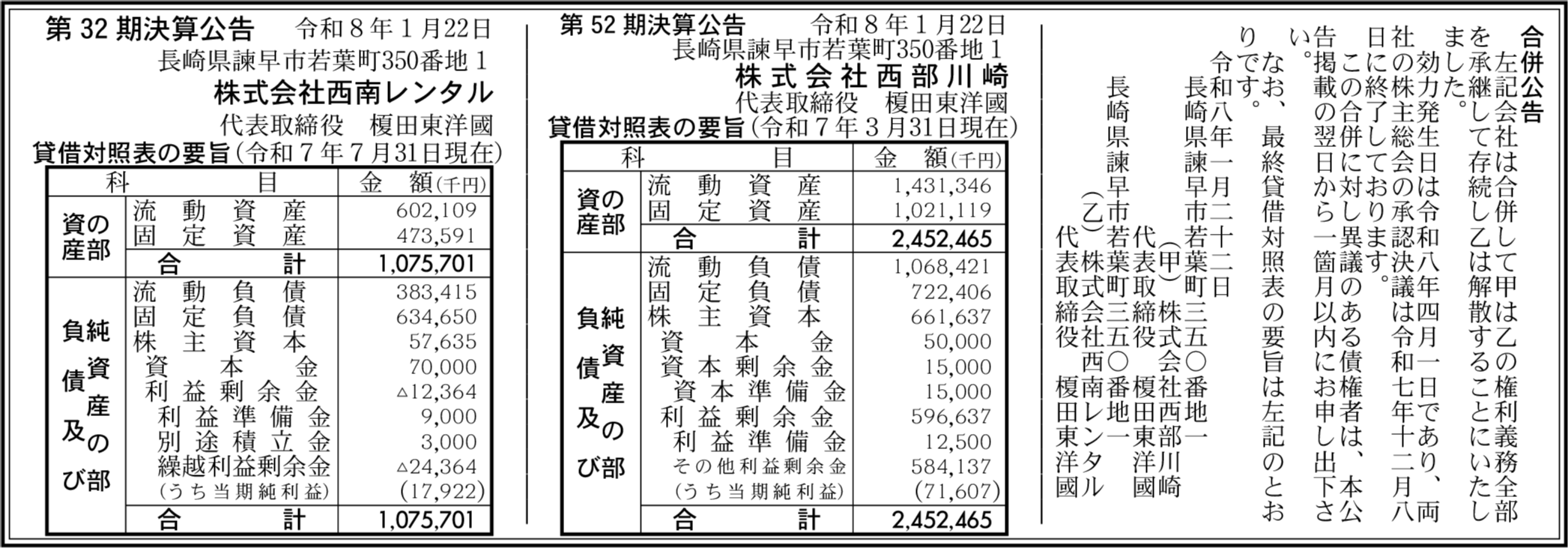 株式会社西部川崎 長崎県諫早市 【2025年3月期】 |