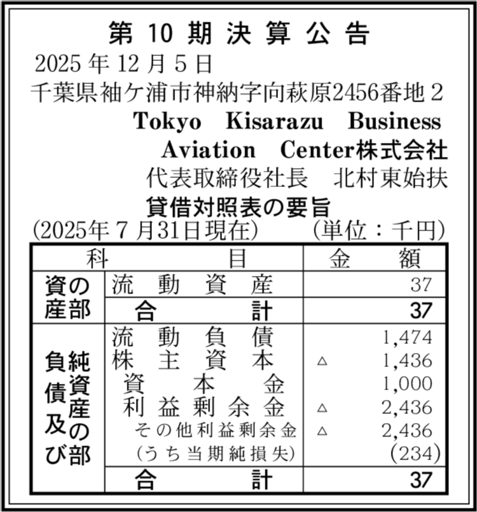 | 会社名 | Tokyo Kisarazu Business Aviation Center株式会社 |