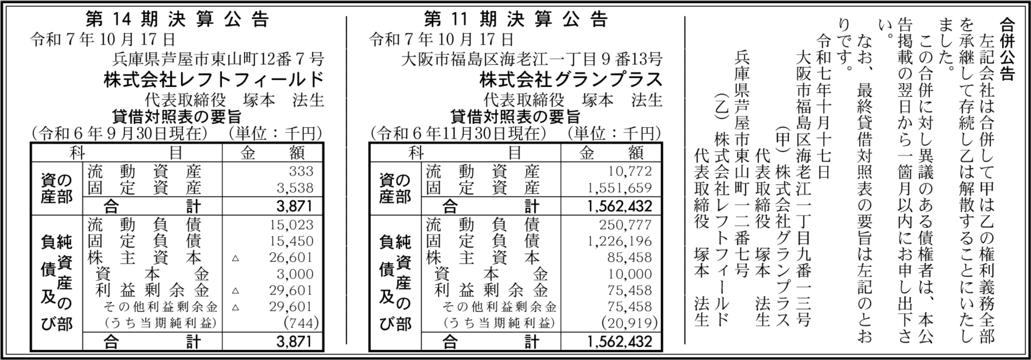 株式会社グランプラス 大阪市福島区 【2024年11月期】 |