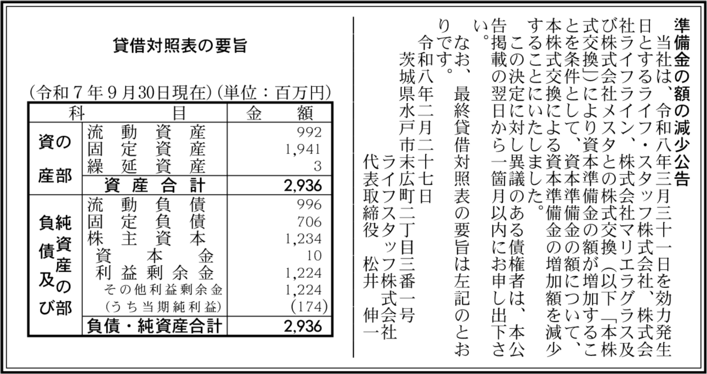 | 会社名 | ライフスタッフ株式会社 |