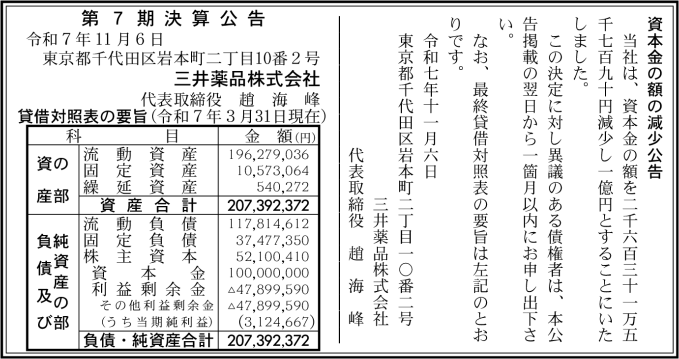 アスター特定目的会社 東京都千代田区 【2025年7月期】 |
