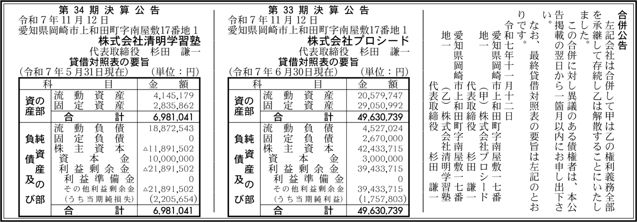 株式会社清明学習塾 愛知県岡崎市 【2025年5月期】 |