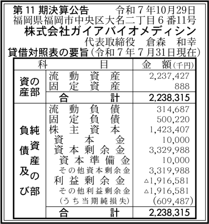 | 会社名 | 株式会社ガイアバイオメディシン |