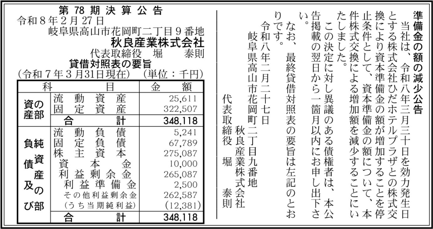 | 会社名 | 秋良産業株式会社 |