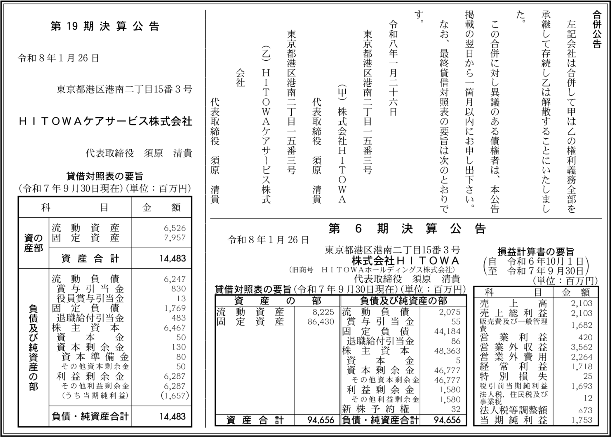 株式会社HITOWA 東京都港区 【2025年9月期】 |