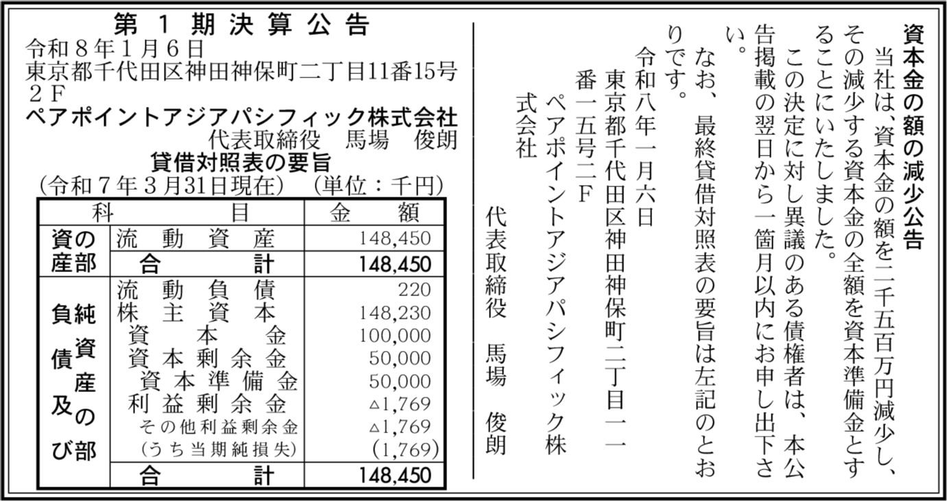 | 会社名 | ペアポイントアジアパシフィック株式会社 |