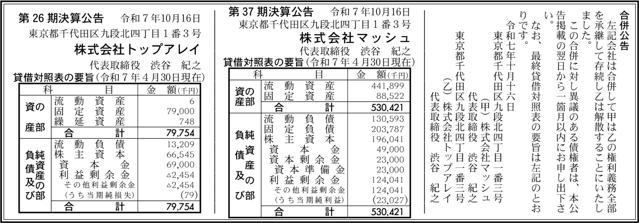 株式会社トップアレイ 東京都千代田区 【2025年4月期】 |