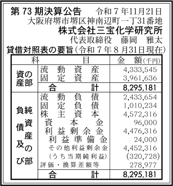 | 会社名 | 株式会社三宝化学研究所 |