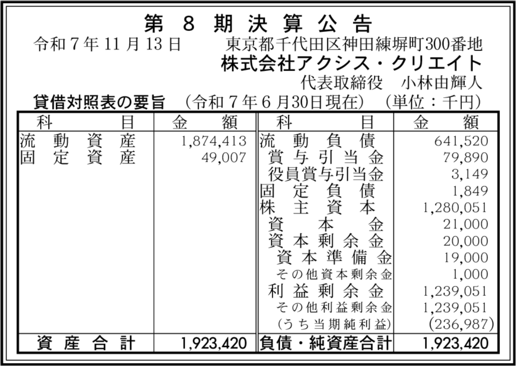 | 会社名 | 株式会社アクシス・クリエイト |