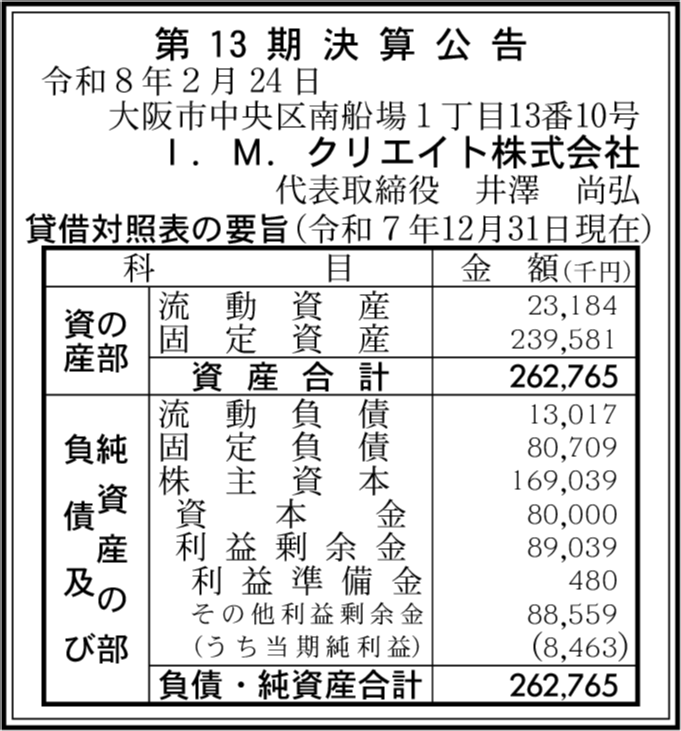 | 会社名 | I.M.クリエイト株式会社 |