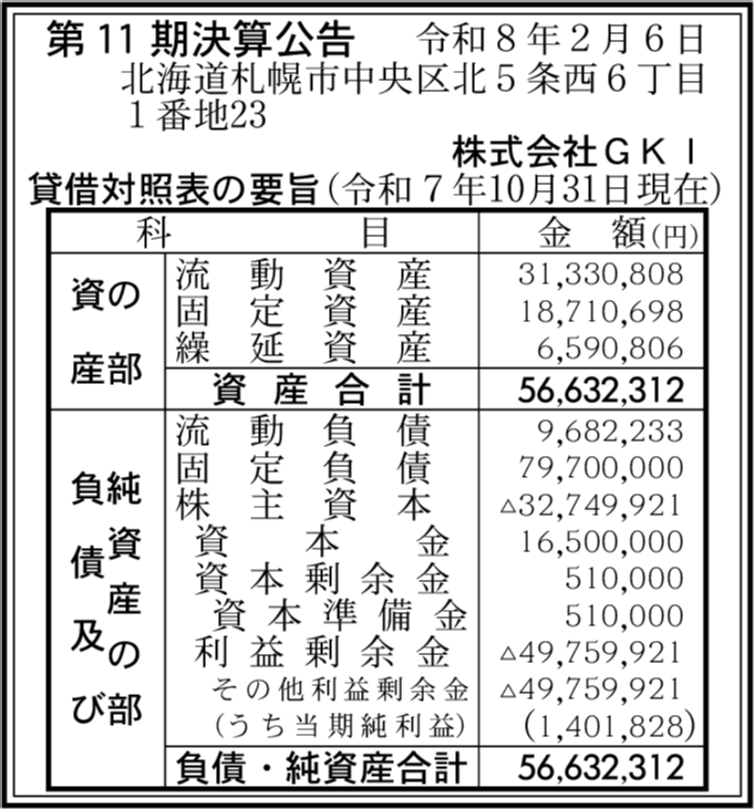 株式会社mtk 札幌市中央区 【2025年10月期】 |