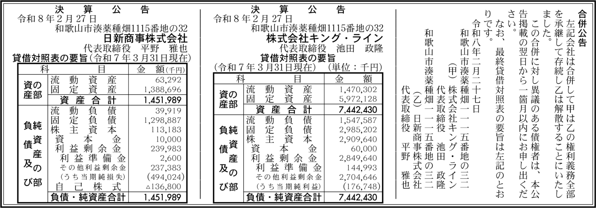 株式会社キング・ライン 和歌山市 【2025年3月期】 |