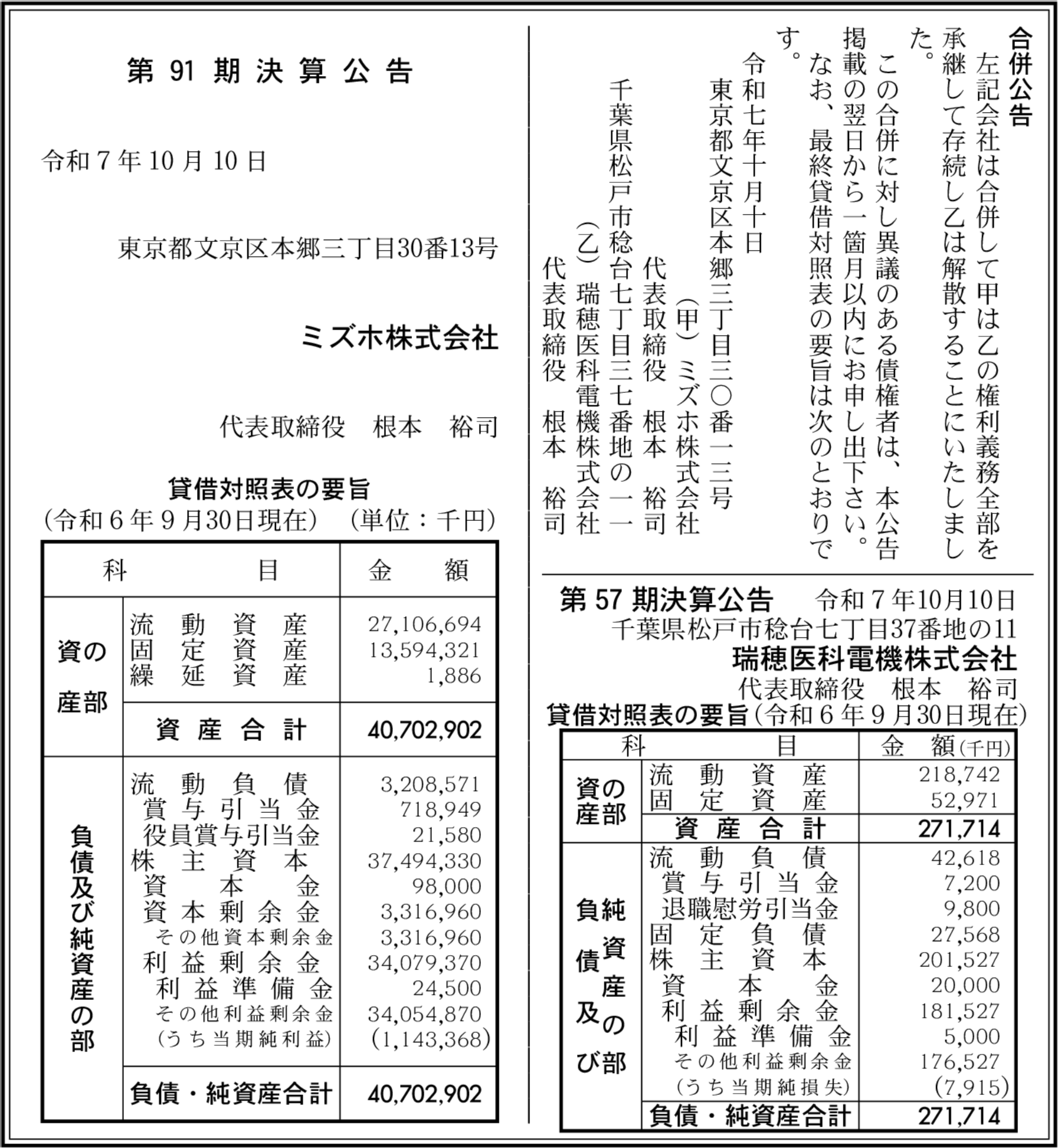 瑞穂医科電機株式会社 千葉県松戸市 【2024年9月期】 |